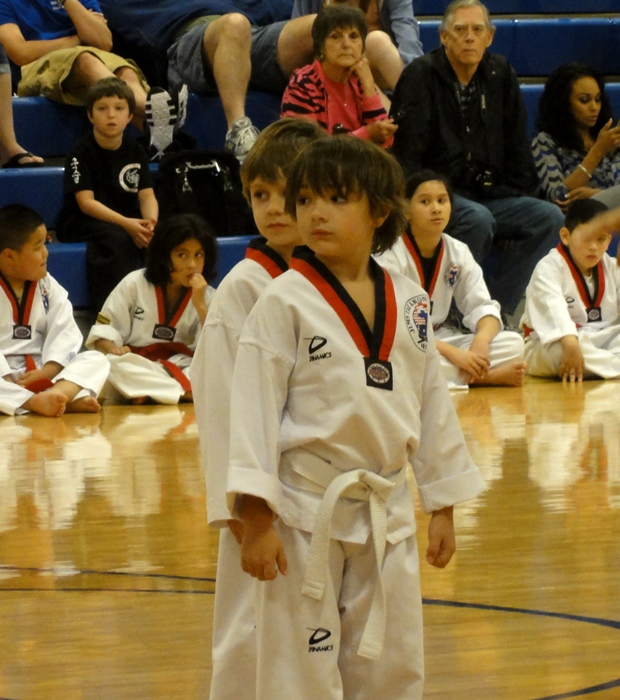 Austin is lined up with the other white belts.