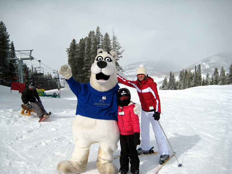 Lauren poses with Betty the Crested Butte Bear