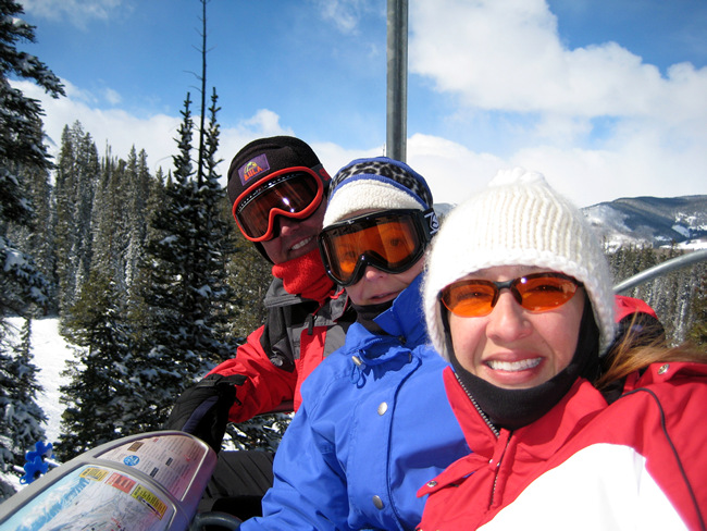 Sherrie enjoys the lift ride while Jay checks his e-mail from the lift.