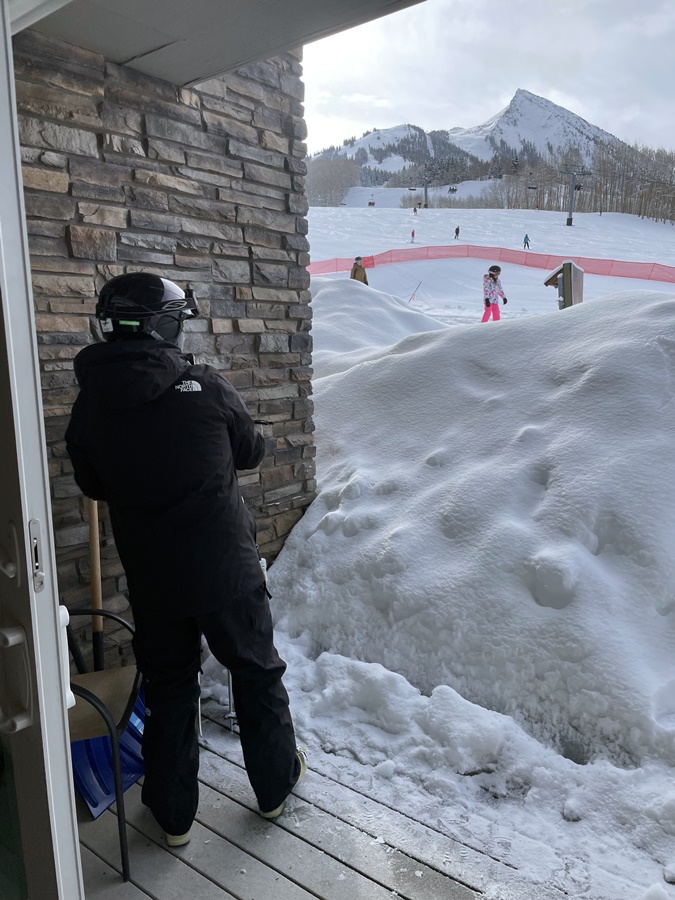Our ski-in/ski-out condo is more like climb in/climb-out.