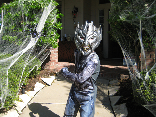 Austin LOVED his Megatron costume!! He was asking me "Daddy, let's take more Megatron pictures." It was SO CUTE - he would lift up his leg, and pose as if he was running - but he's just standing there on one foot - LOL!!!