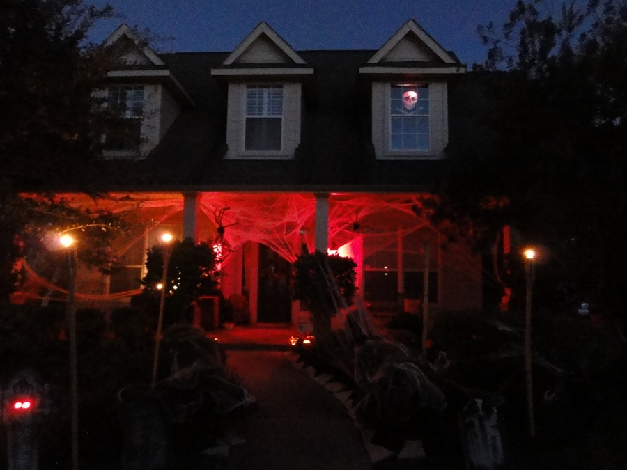 We had a pretty good turnout. Nothing that compares to the 100's of kids we used to see in Garden Oaks. But, I bet we saw close to 50 kids, and I was able to get rid of two big bowls full of candy. Between groups of kids - I took advantage of the darkness, and took a few pics around the house...