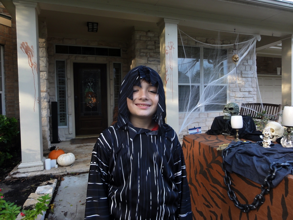 And now, here are pics from Halloween night. It had been raining most of the day, and we were worried we might get rained out. Thankfully, the weather cleared up around 2:00pm, and I had enough time to finish decorating the house. We had a really fun Halloween.