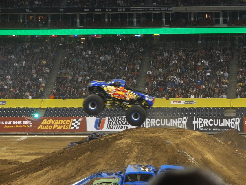 Steve and Aiden invited me and Austin to see the Monster Truck Jam - WOOOHOOO!!! This was our first time to see the monster trucks. Steve and Aiden were pro's. It was their third year running to attend. We had 'pit passes', which allowed us to get on the floor before the show. It was fun. I was amazed at the lines to get autographs - who knew? ...anyway, after tooling around on the dirt floor taking pictures, we eventually settled into our seats with the usual popcorn, peanuts, hot dogs and beer (oh yeah, and water for the kids).