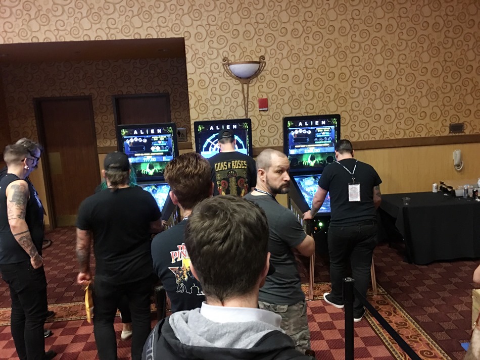 Back in 2016, I began hearing about the Alien pin. Alien had always been a dream theme for me. It was the very first R-rated movie I saw back in 1979 when me and a buddy snuck in 'cause we were only 14. I've always loved the Giger art, and remember playing 'Space Invaders' pinball back in the day solely because it looked so cool. It was an Alien rip-off and Bally eventually paid for that. But anyway, the more I heard about Alien pinball the more I wanted one. I've had a relationship with Charlie at Joystix, and asked him if he was ever going to get any. He said no, and warned me about dealing with Heighway. Well, I figured I'd try to get one anyway, so I contacted Cointaker, the only official US distributor. I talked to Melissa, and she informed me the only way to get one was to either leave a deposit with her and get on the wait-list, or pre-order directly from Heighway. Well, I'm not really the pre-order kinda guy - so I started asking if they were going to bring any demo games to the Texas Pinball Festival that I could buy with CASH. Melissa told me she really has no idea what Heighway will do or how many games they will bring. But sure enough, Andrew (CEO of Heighway) starts to say...well yes...I think we will have a game there for you maybe...can't be sure how many we will bring...but yes we should have one for you...probably. We had a bunch of back and forth until about a few weeks before TPF, when I finally got confirmation from Andrew and Melissa that indeed they would have a demo game I could buy with cash at TPF.