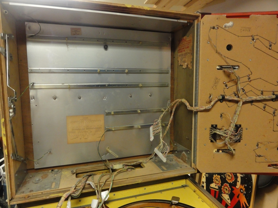 Lifted up the playfield to get my first look inside the cabinet - not too bad.