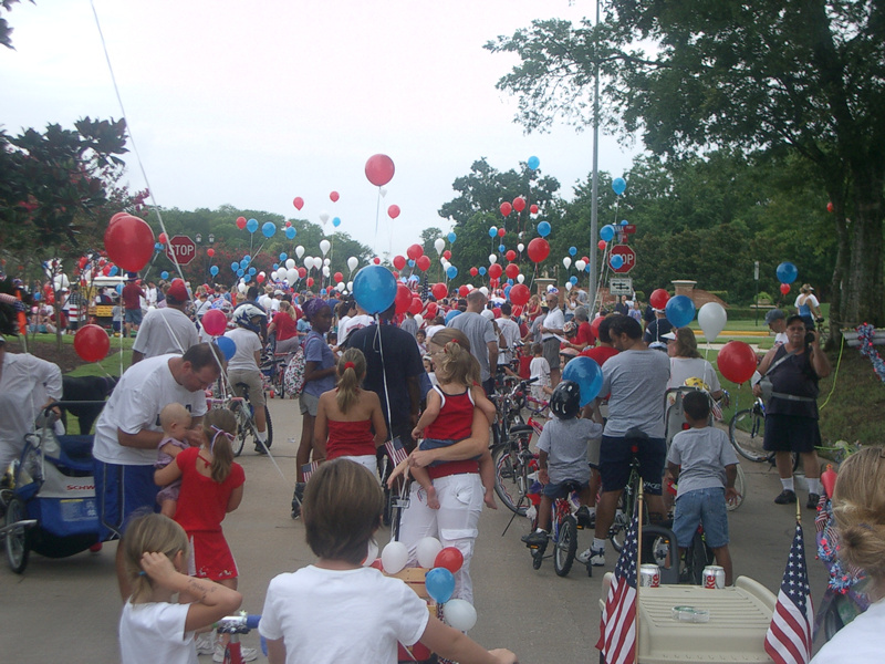 This was our second year to celebrate July 4th in our new neighborhood. To start the day, we gathered up the kids, got on the bikes and headed out to the parade. Lauren rode in the tandem bike behind me, and Austin rode in the trailer behind Jacqui. I really enjoy seeing all the balloons, flags and decorated bikes. If we were good parents, like our neighbors Laura and Walter, we would decorate our kids bikes. Anyway, the parade was a lot of fun, and we would have spent the rest of the day enjoying the festivities at the pool, but the rain came down hard and heavy.