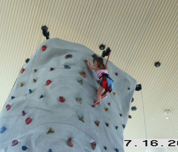 A couple weeks after the 4th of July, we spent the day shopping at the mall. They had this big rock wall set up in the food court, and Lauren really wanted to try. We were a little worried, as she's only 4 years old - but hey, why not! We were surprised and very proud when she made it all the way to the top. Great job Lauren!