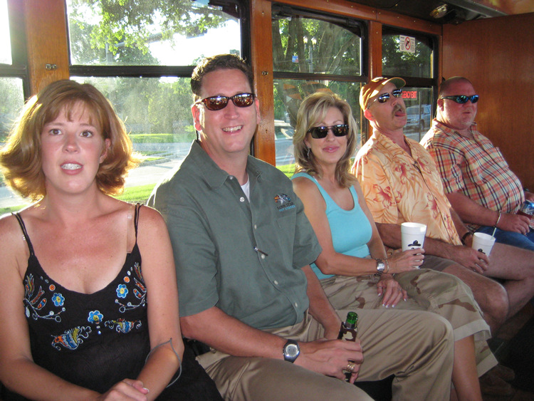 The Scanlan Oaks Elementary school PTA put on an auction to raise funds for the school. Laura and Walter won a trolley party - and invited all of us to join. The trolley picked us up, and then we headed to Post Oak grill (on Highway 6) for some tasty appetizers. Then, it was off to Lou's Back Porch bar for more drinks, and a couple games of pool.