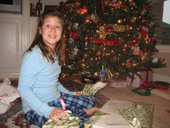 OK - after all that - we finally made it Christmas morning! MERRY CHRISTMAS EVERYONE!! As usual, Austin was the 1st to wake up. I'm not sure how long he was up by himself, but he eventually came into our room and woke up up. It was so cute - he had a flashlight, and said "I tried to open my presents, but it was too loud. Can you help me?"