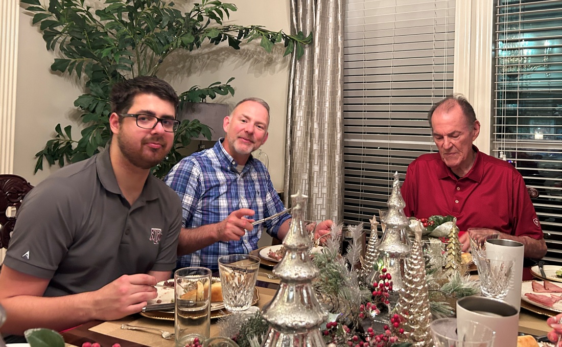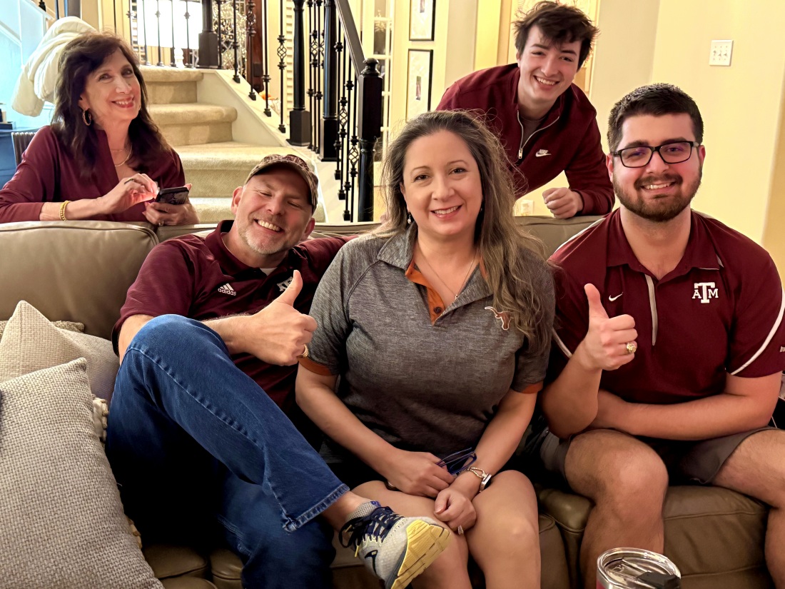 My brother sent me this pic - Blake, the UT grad and Trey, the A&M grad
