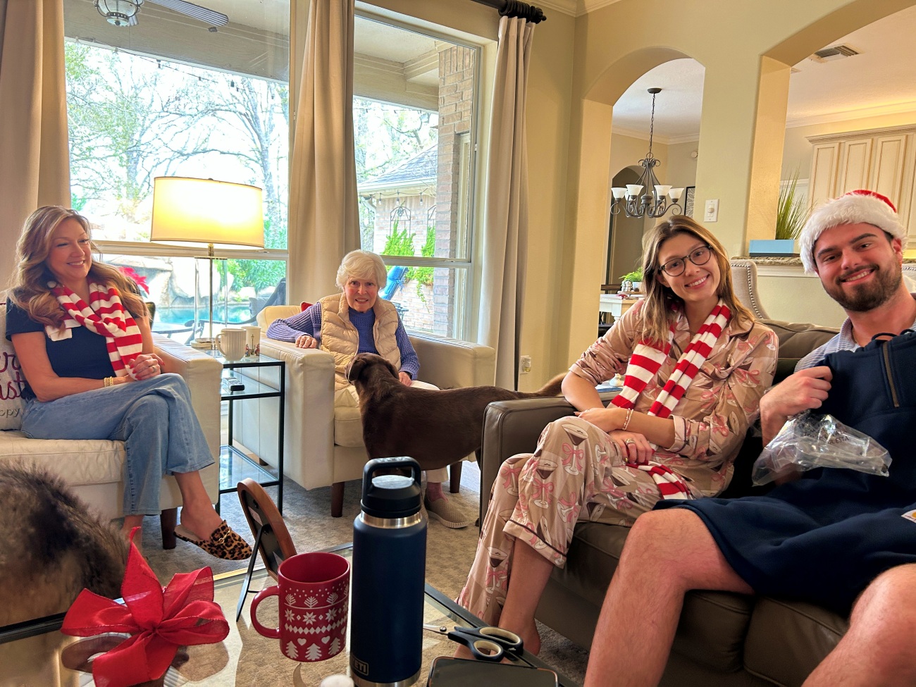OK! Jacqui and Nana are ready to start Christmas morning at our house